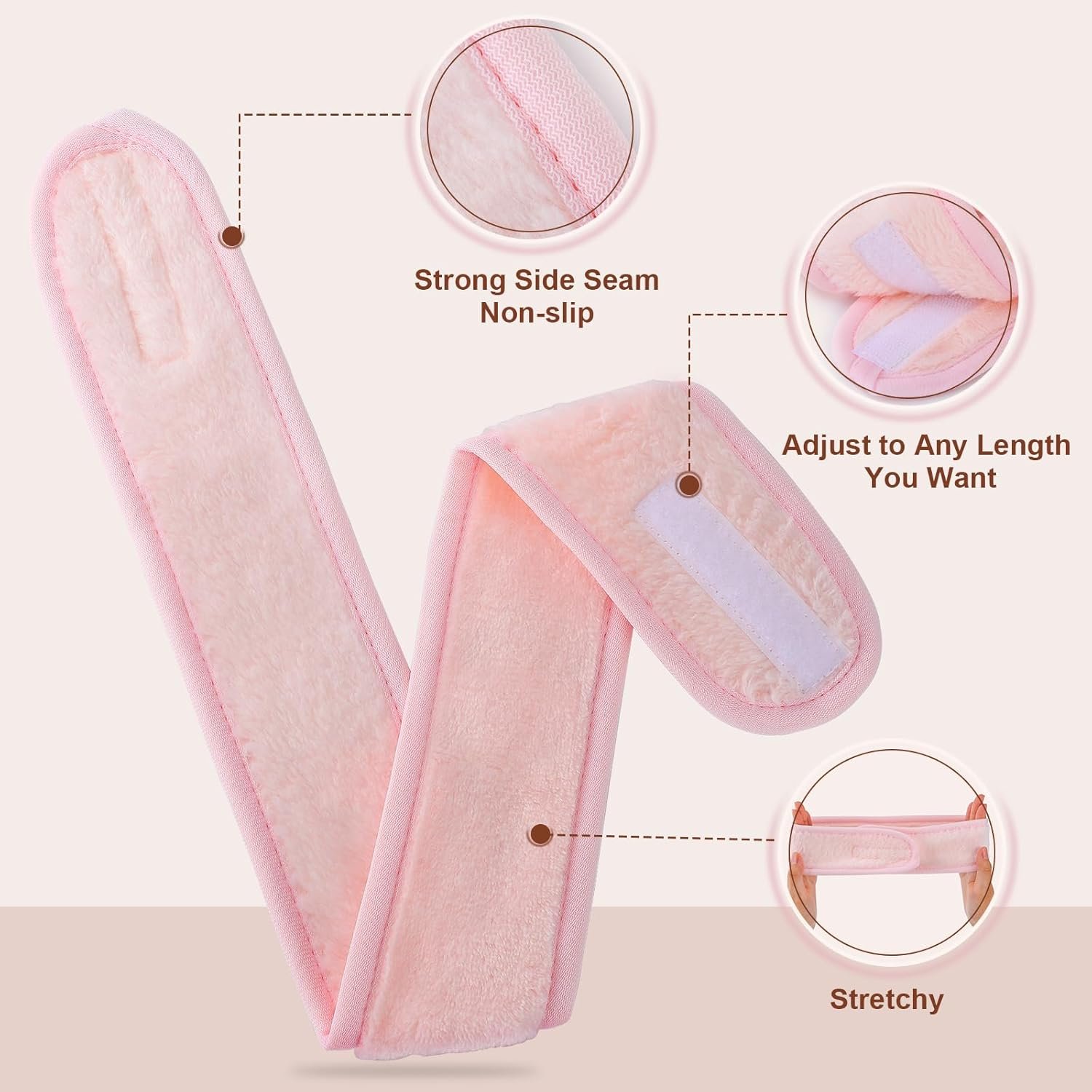 Adaptable Magic Tape Design : Each makeup headband comes equipped with a 3.1” length Velcro, allowing for easy adjustments to find your perfect fit. This design ensures a secure fit, keeping your hair away from your face and also preventing any excessive stress on your hair while you indulge in your skincare routine or makeup application.