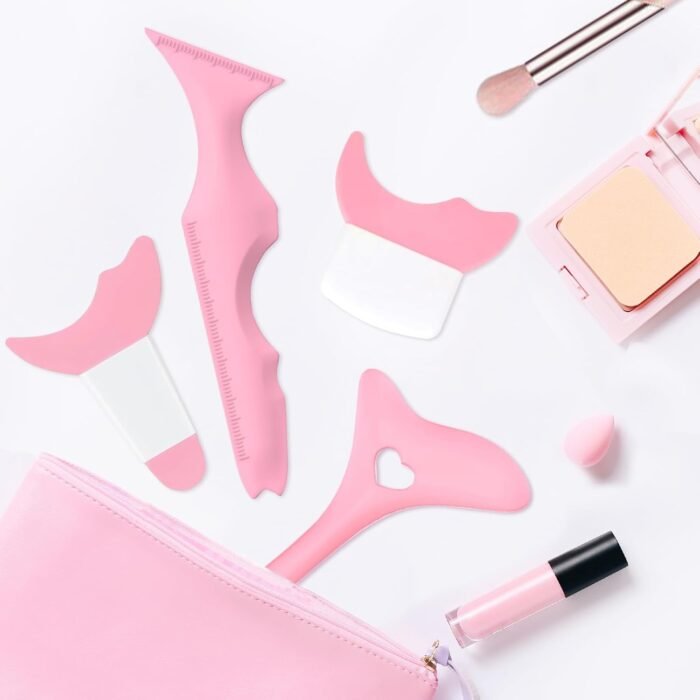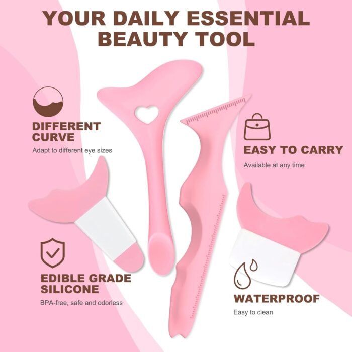 4Pcs Eyeliner Stencils, Silicone Winged Tip, Multifunctional Mascara Shield for Eyeshadow and Eyelashes, Professional &Quick Cat Eye Makeup Tool for Beginners (Pink)