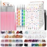 FANDAMEI Nail Art Brushes Set, Nail Art Kit, Nail Design Kit, Nail Art Dotting Pens, Nail Stickers, Butterfly Nail Art Sequins, Nail Foils, Nail Art Flakes Iridescent, Rhinestones For Nails