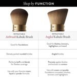 EVEN, STREAK FREE & PATCH FREE APPLICATION: Swirl or dip the retractable Kabuki brush into powder and gently tap off any excess. Apply to skin using sweeping, circular motions. Slide the base down slightly to apply creams or push it down all the way for powders.