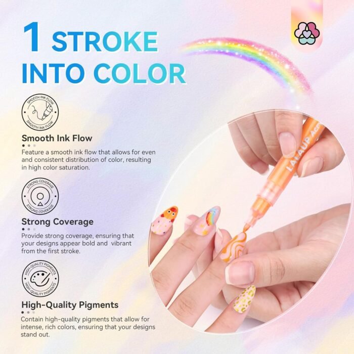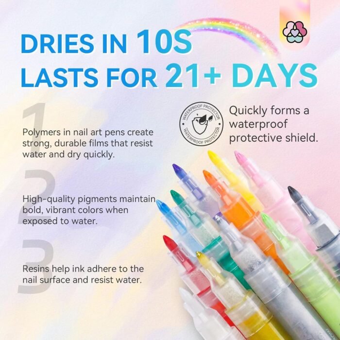 LONG-LASTING & DURABLE: Saviland nail polish pens for nail art deliver long-lasting and durable results that won’t chip or fade over time, even when exposed to water, heat, or humidity. This is vital for nail art, as it ensures that your designs stay intact and vibrant for longer periods.